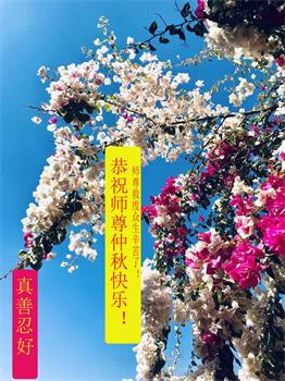 一年一度的中秋節又到來了。弟子感恩師尊的洪恩浩蕩!在這正法最後的時間裏,弟子們遵照師尊的教誨,修好自己,救度更多的眾生,完成史前的誓約,不辜負師尊的期望及眾生的期盼。