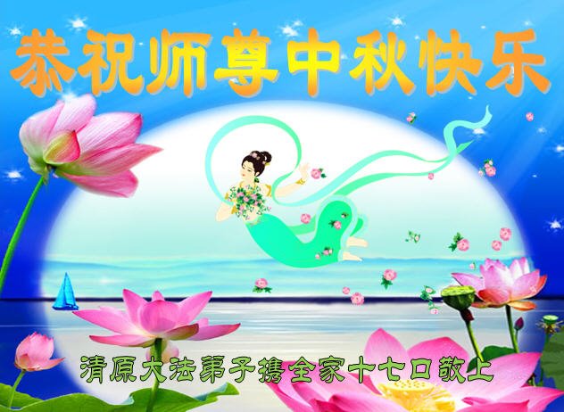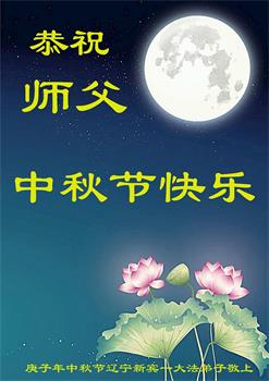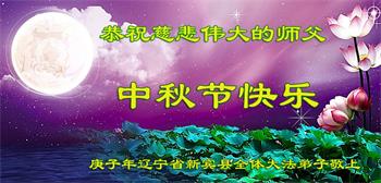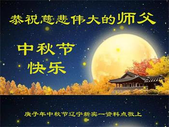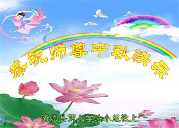 遼寧省鞍山市鐵東區三位大法弟子及全家人恭祝慈悲偉大的師尊中秋節快樂!