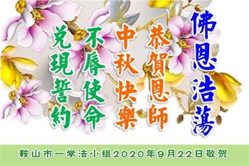 遼寧省鞍山市鐵西區夫妻大法弟子及明真相家人恭祝師尊中秋快樂!