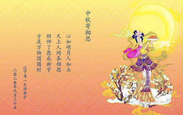 遙祝慈悲偉大的師尊中秋節快樂!弟子用盡人類的語言也表達不盡師尊對弟子在修煉路上的一路點悟和保護!在正法最後的關鍵時刻,弟子一定走好走正師父安排的路,在修煉路上更加精進,不讓自己留下更多遺憾,弟子叩謝師恩!