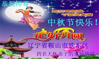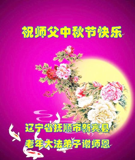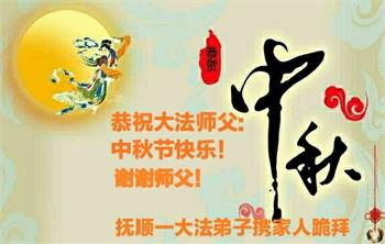 我是一名醫生,得法修煉二十三年。幸得恩師救度,值此中秋佳節,請捎去我及全家人對偉大慈悲師父的問候,恭祝師尊中秋快樂!想念師父!叩謝師恩!