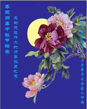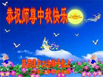 祝師尊中秋快樂!我們大家非常想念您。盼望早日與師父團聚,感恩師尊救度之恩。我們只有做好大法弟子該做的事來報答慈悲偉大的師父!師父辛苦了!
