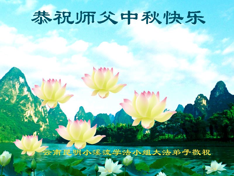 雲南昆明小溪流學法小組大法弟子恭祝師父中秋快樂!
