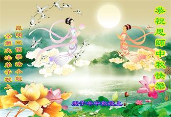 昆明市三個學法小組大法弟子恭祝慈悲偉大的師尊中秋快樂!