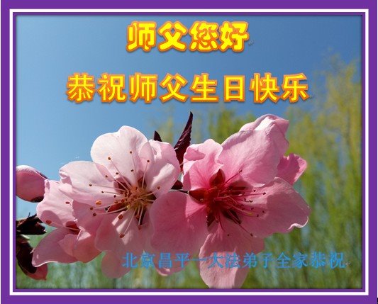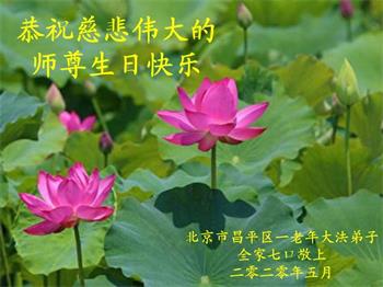 慈悲偉大的師父您好!您辛苦了!弟子全家無限感恩師父的慈悲救度!恭祝師父生日快樂!謝謝師父!弟子修的不好,一次次的讓師父費心。但我會銘記自己「大法弟子」的稱號和使命,聽師父的話,走師父安排的路,助師正法,修好自己,一修到底。