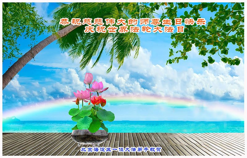 在普天同慶偉大至尊的師尊華誕之日暨世界法輪大法日即將到來之際,弟子恭祝慈悲偉大的師尊生日快樂!弟子叩謝浩蕩師恩,叩謝師尊對弟子和眾生的勞苦救度和無量的付出。2020年是不平凡的一年,無數的眾生處於生死邊緣,弟子們責任重大。弟子一定牢記好師尊的教誨,修好自己、以法為師、全力以赴、堅定的做好自己該做的一切、鏟除邪惡、讓更多的眾生獲得新生、讓更多的眾生沐浴在佛法的光輝下、浴火重生、走向光明和無限的美好。無論時日還有多久,無論還有多少艱難險阻、弟子都將堅修大法緊隨師尊,堅定走好師父給安排的修煉道路,完成使命,兌現神聖的誓約,圓滿隨師還。弟子再次叩謝師恩。