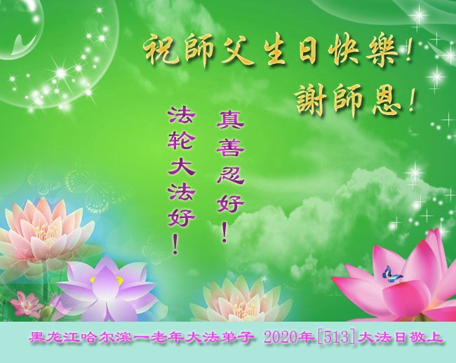 黑龍江哈爾濱一老年大法弟子恭祝師尊生日快樂!