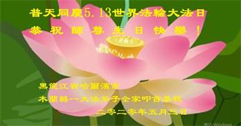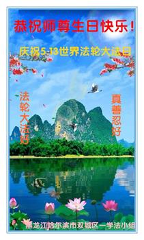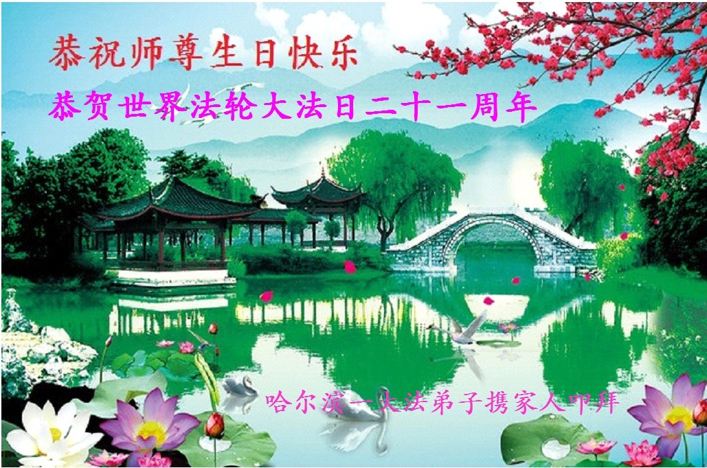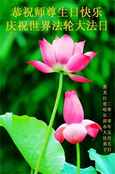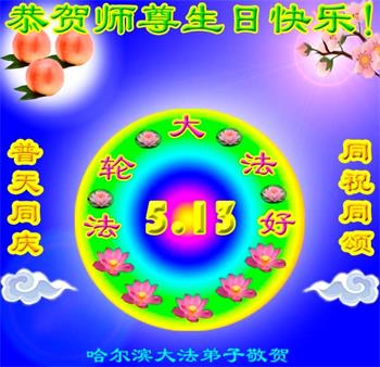 黑龍江省哈爾濱市大法弟子恭祝慈悲偉大的師尊華誕暨世界法輪大法日!