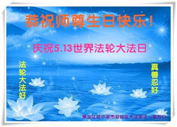 哈爾濱大法弟子恭賀世界法輪大法日暨師尊華誕(20條)