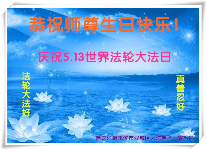 黑龍江省哈爾濱市大法弟子恭祝師尊生日快樂!慶祝世界法輪大法日!