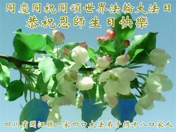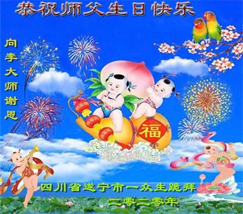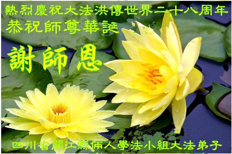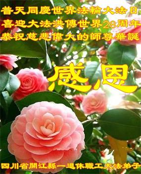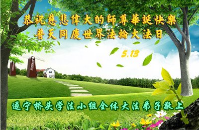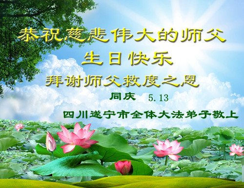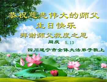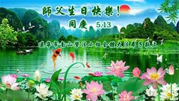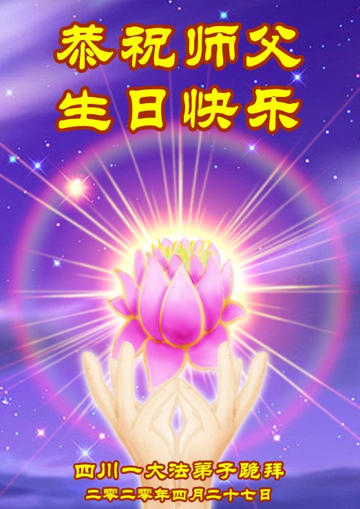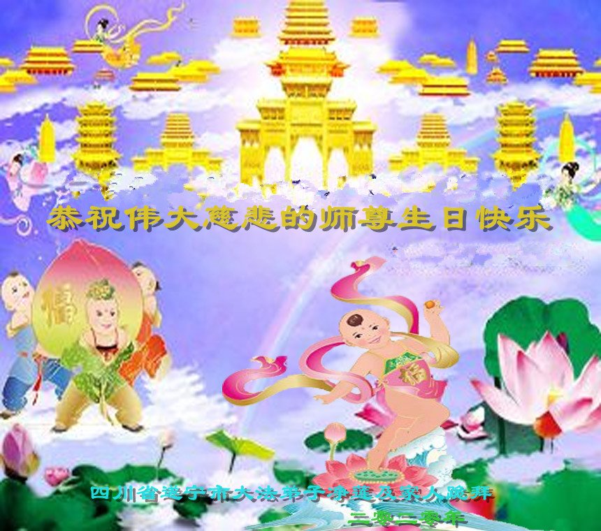 衷心祝願偉大慈悲的恩師生日快樂!是師父用無量慈悲把我們從地獄撈起,洗淨。在恩師的慈悲保護下,我們在大法中受益無窮。用盡人間的語言也無法表達師父給我們的恩情的萬一,唯有做好師父要求的三件事,兌現史前的誓約,多救人。報答師父給我們的萬一,跟師父回家。