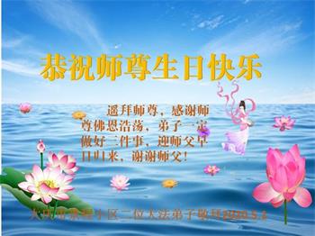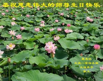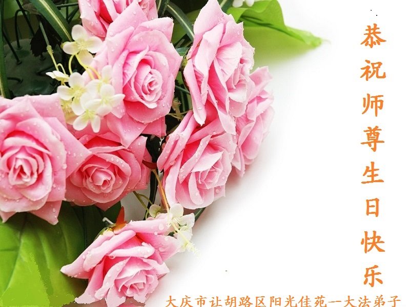 黑龍江省大慶市讓胡路區西寨、陽光嘉城、明湖花園等全體大法弟子恭祝師尊生日快樂!