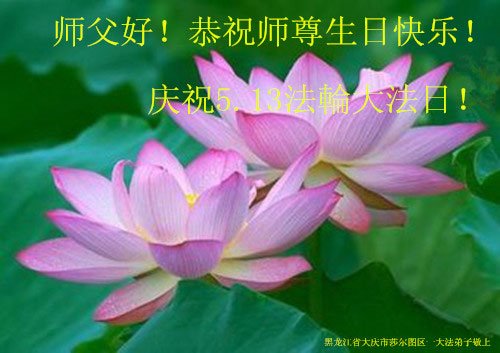 黑龍江省大慶市薩爾圖區一大法弟子恭祝師尊生日快樂!慶祝法輪大法日!