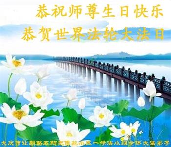 黑龍江大慶一大法弟子恭賀世界法輪大法日!恭祝師父生日快樂!