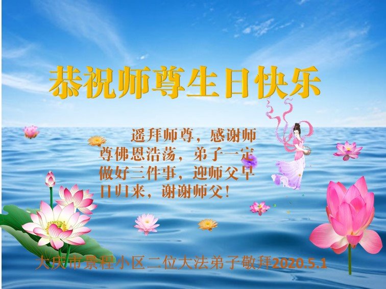 黑龍江省大慶市一夫妻大法弟子恭賀師尊華誕暨世界法輪大法日!