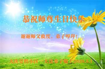 黑龍江大慶一大法弟子恭祝師父生日快樂!師父辛苦了!