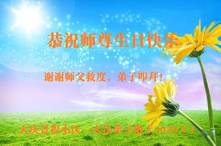 黑龍江大慶讓胡路區一大法弟子恭祝師尊生日快樂!恭賀5.13世界法輪大法日!