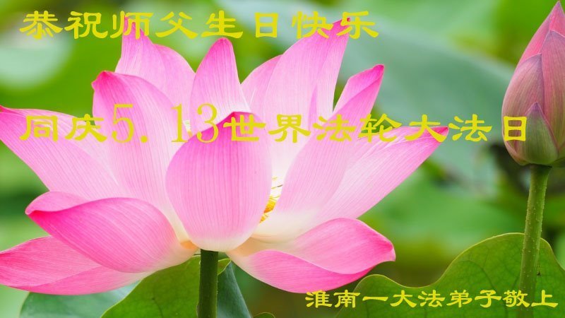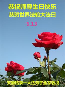 「五﹒一三」既是「世界法輪大法日」又是師尊華誕,在這即將來臨喜日之時,讓我們全體大法弟子恭祝師尊生日快樂!同賀5.13世界法輪大法日!我們全體大法弟子在全世界普天同慶的日子到來的時候,弟子更加想念師尊,謝謝師尊!眾生沐浴在您的佛恩浩蕩之下,用盡世間的語言也無法表達出您的感恩和保護!只有在一思一念、一言一行中對照大法穩步的走好最後的路,按師尊的教誨做合格的正法時期大法弟子,跟師尊回家!