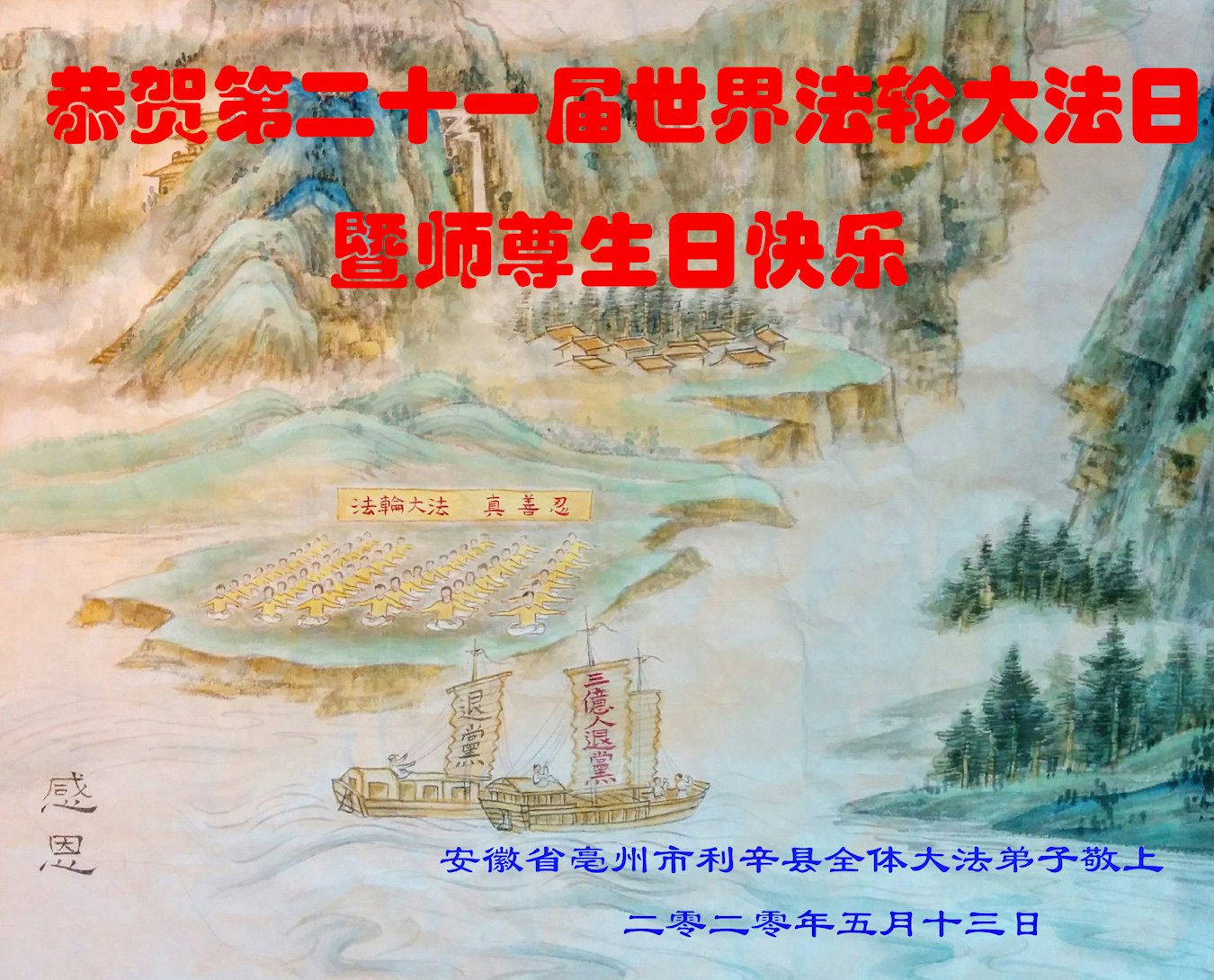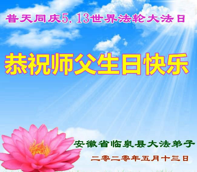 安徽省全體大法弟子恭祝慈悲偉大的師尊生日快樂!祝賀2020年世界法輪大法日!我們謹記師尊教導,一定聽師父的話,修好自己,做好三件事,多救人,助師正法,圓滿隨師還!