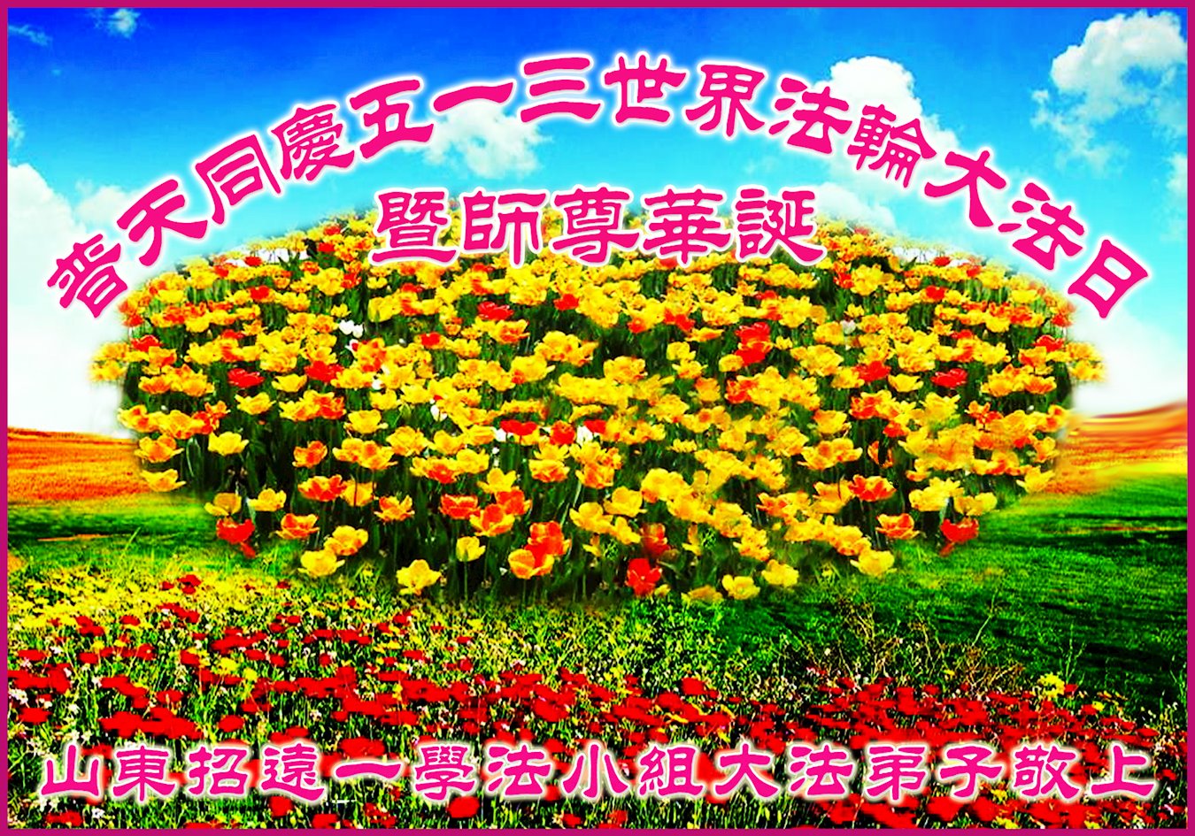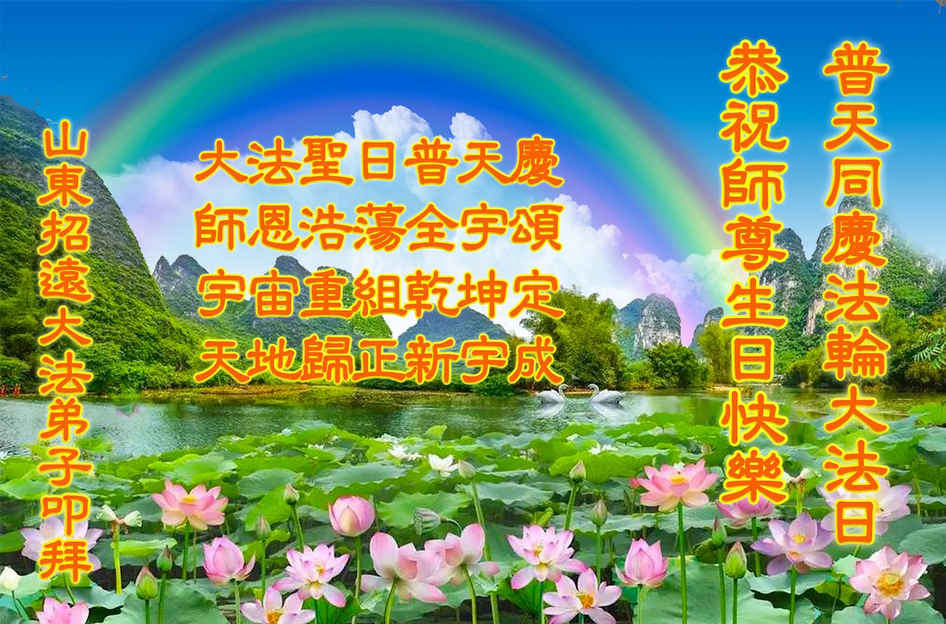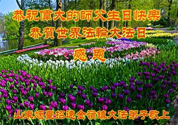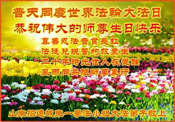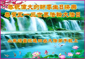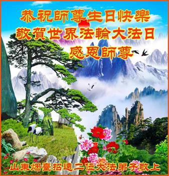 山東省威海市乳山市十名大法弟子向慈悲偉大的師尊問好:恭祝師尊生日快樂!恭賀世界法輪大法日!