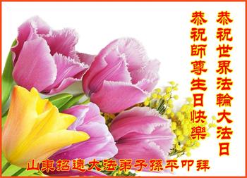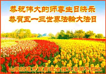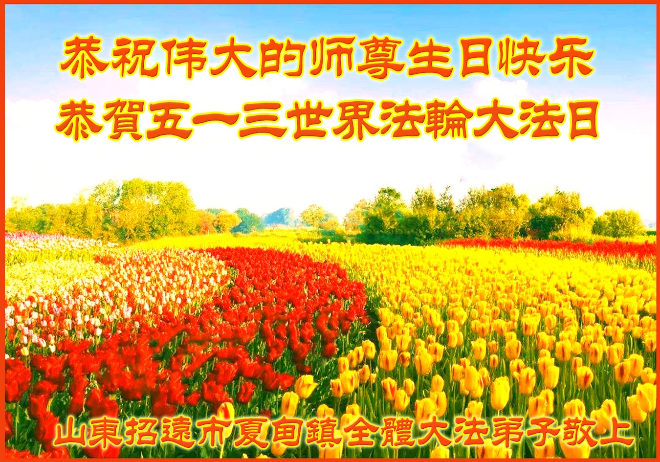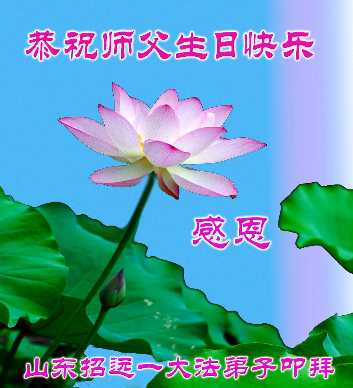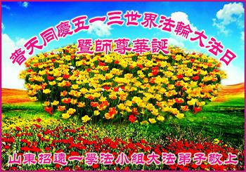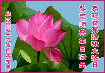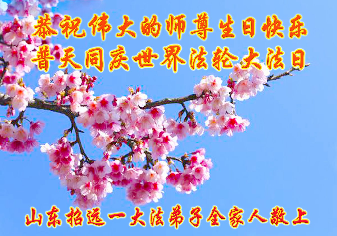 山東省威海市乳山市十名大法弟子向慈悲偉大的師尊問好:恭祝師尊生日快樂!恭賀世界法輪大法日!