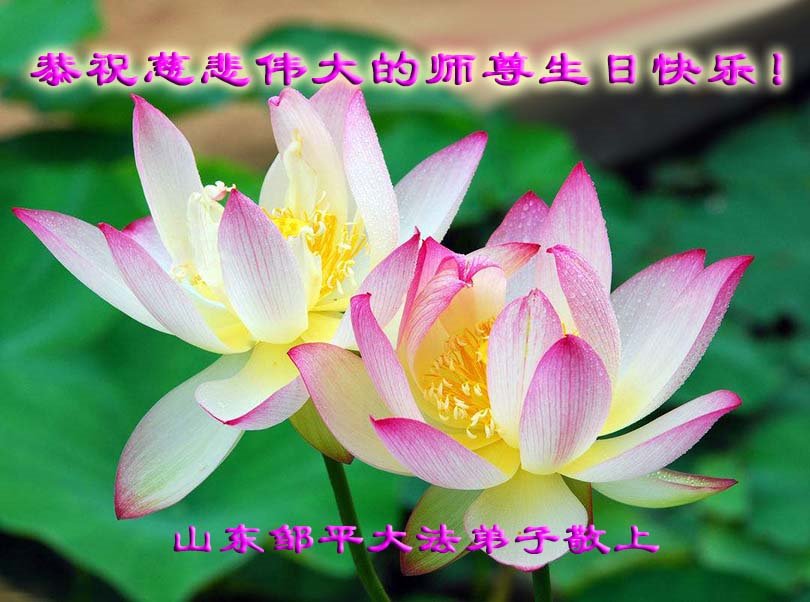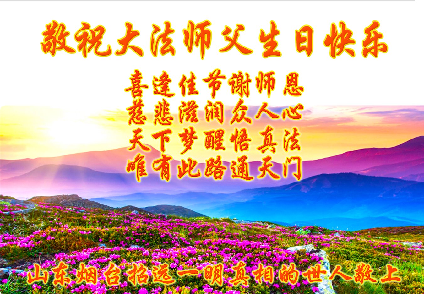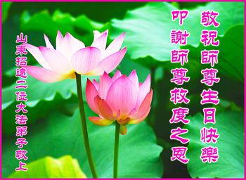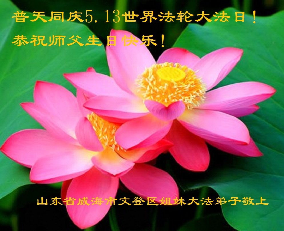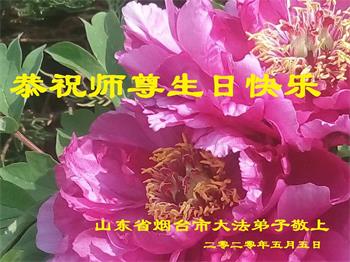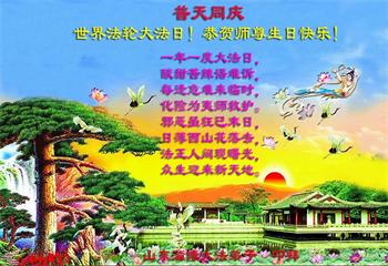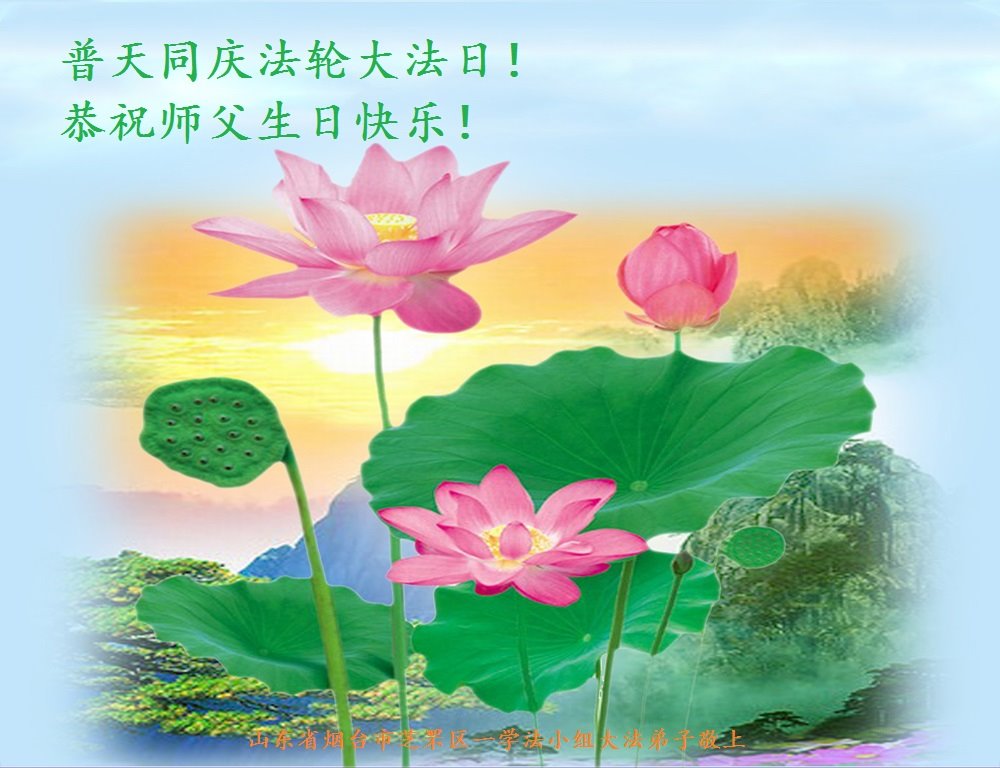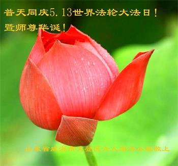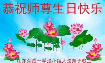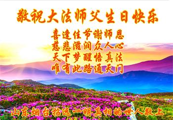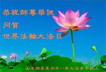 山東煙台萊州市一家大法弟子恭祝師尊華誕!同賀世界法輪大法日!