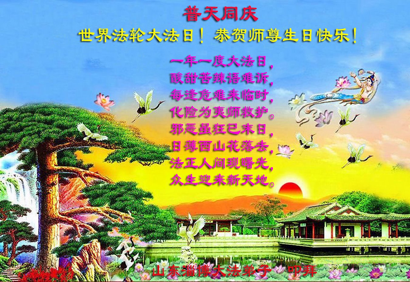 恭祝慈悲偉大的師父生日快樂!同賀世界法輪大法日!