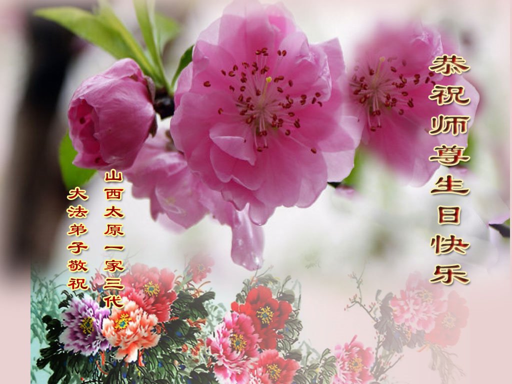 山西省太原市一家兄弟姐妹大法弟子恭祝師尊生日快樂!