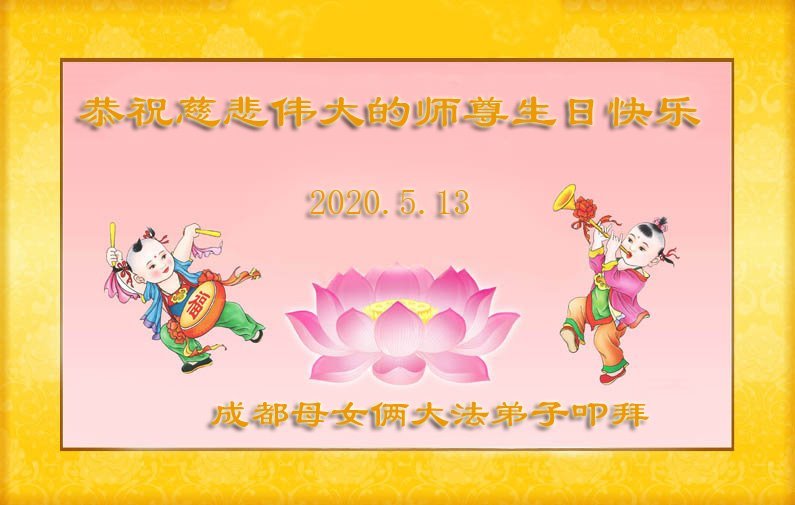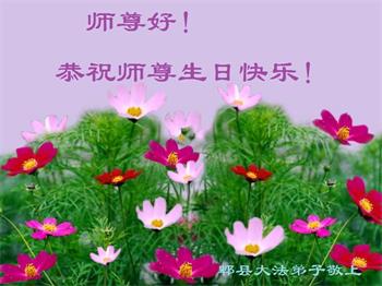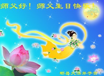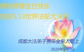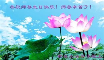 師父:我們全家在您的佛恩浩蕩下,都獲得了新生。家人在這些年中心甘情願的幫助大法弟子做了他們應該做的。不管邪惡多麼囂張,他們都和大法弟子站在一起。在此,我們全家謝謝師父的慈悲救度,祝師父生日快樂!