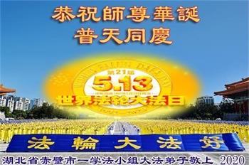 湖北省隨州市廣水市大法弟子恭賀師尊華誕!普天同慶世界法輪大法日!感恩師尊洪傳大法28年!弟子精進謝師恩,廣救眾生隨師還。