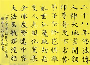 2020年5月13日是第二十一屆世界法輪大法日!法輪大法洪傳二十八週年暨師尊華誕的日子!石家莊市長安區幾位老弟子謹以此詩獻給師尊!以表寸心: