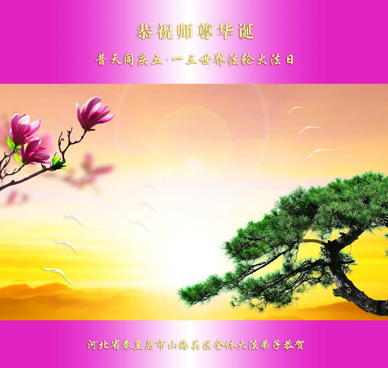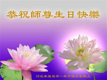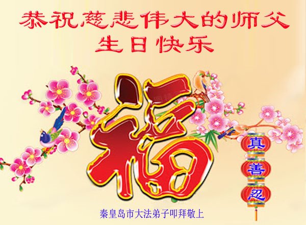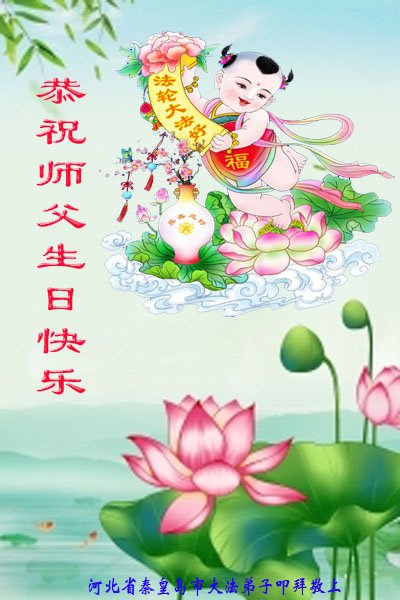 河北省秦皇島市山海關區一大法弟子恭祝師尊生日快樂!同賀五﹒一三世界法輪大法日!弟子向師尊跪拜!多謝師尊慈悲救度!