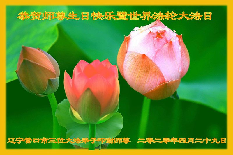 遼寧省營口市一家三位大法弟子恭祝師尊生日快樂!暨世界法輪大法日!