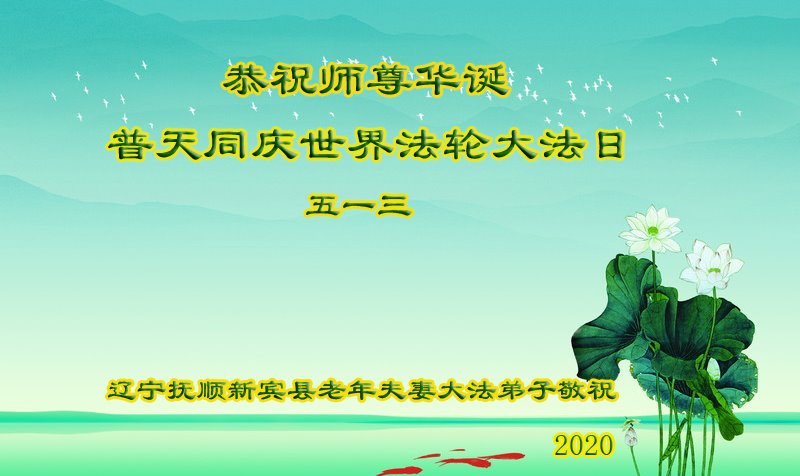 遼寧撫順新賓縣一老年夫妻大法弟子恭祝師尊華誕!普天同慶世界法輪大法日!