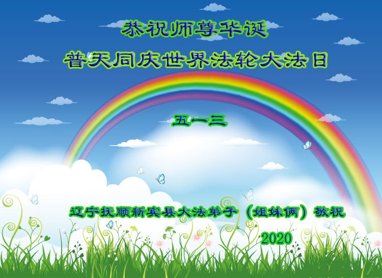 遼寧撫順新賓縣大法弟子姐妹倆恭祝師尊華誕!普天同慶世界法輪大法日!