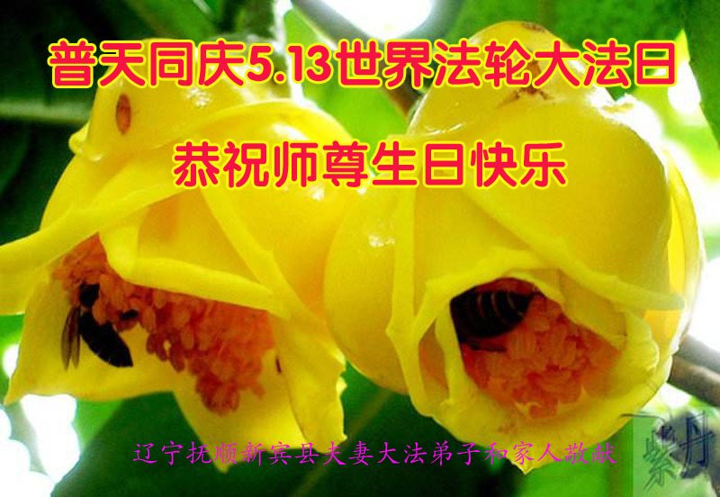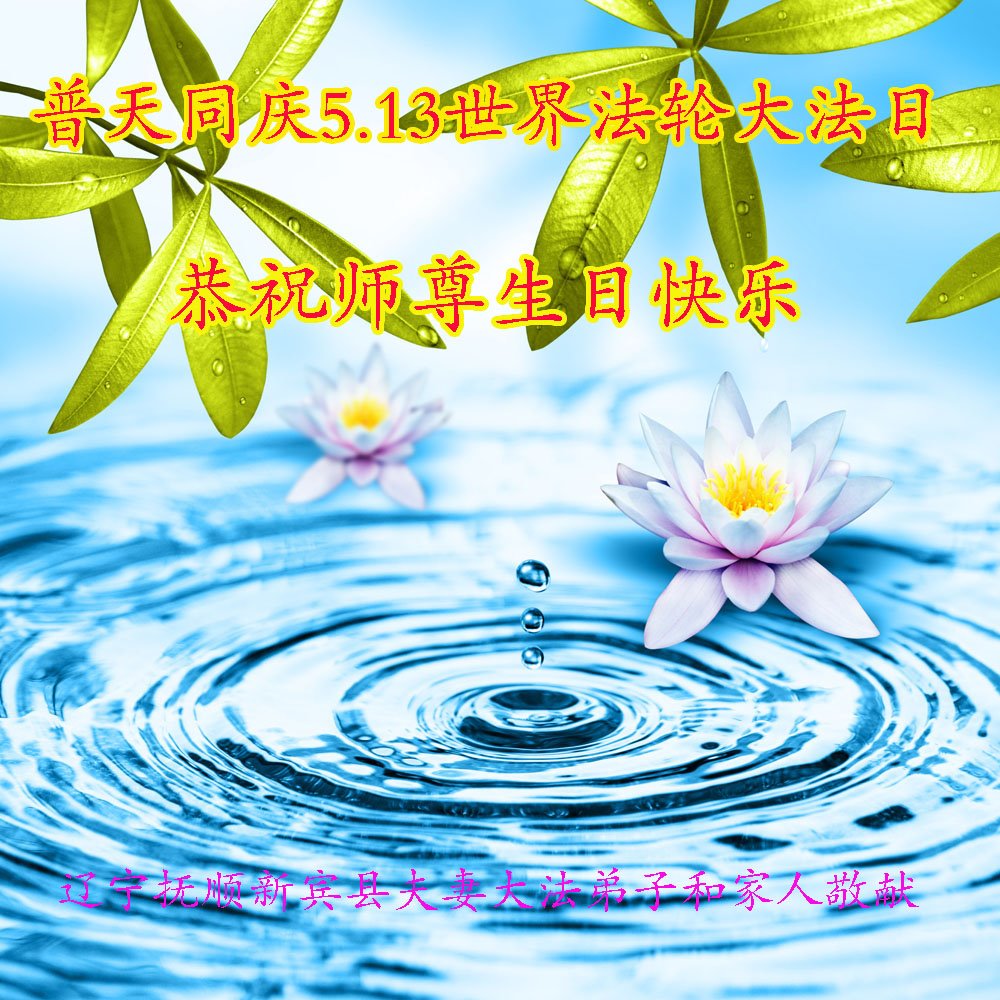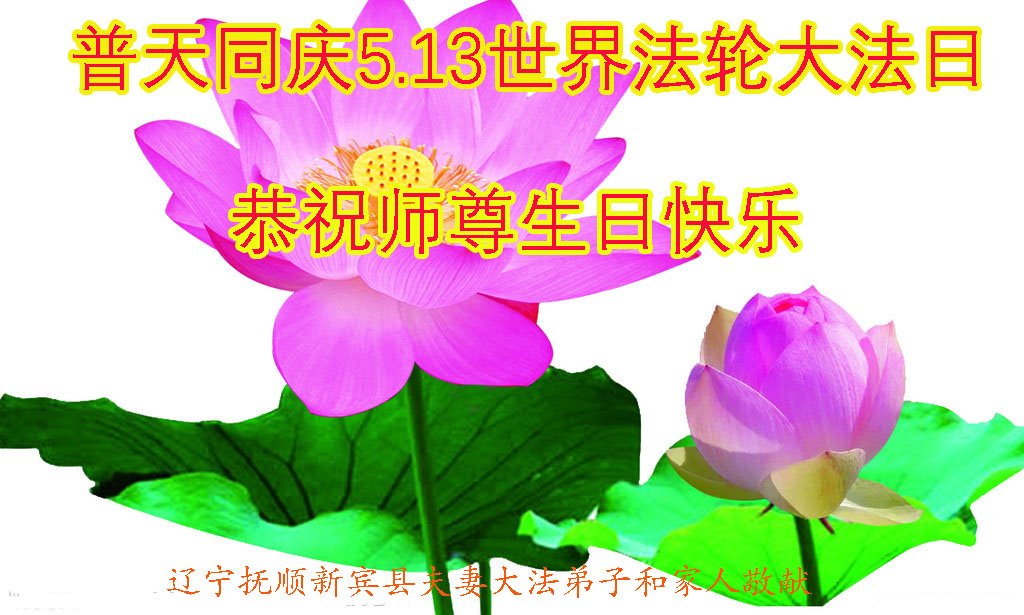 遼寧撫順新賓縣夫妻大法弟子和家人普天同慶5.13世界法輪大法日!恭祝慈悲偉大的師尊生日快樂!