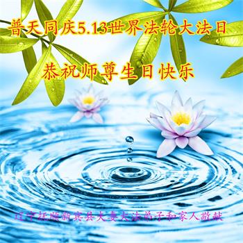 在這普天同慶同祝同頌的五·一三世界法輪大法日來臨之際,弟子們心中充滿著對師尊的無限感恩,在助師正法的修煉路上已走過了二十多年的修煉歷程,時時刻刻都在師尊的保護之中走到了今天,在大法的佛光普造下,義無反顧的走在救人的路上,得到了錘煉,逐漸的走向成熟。