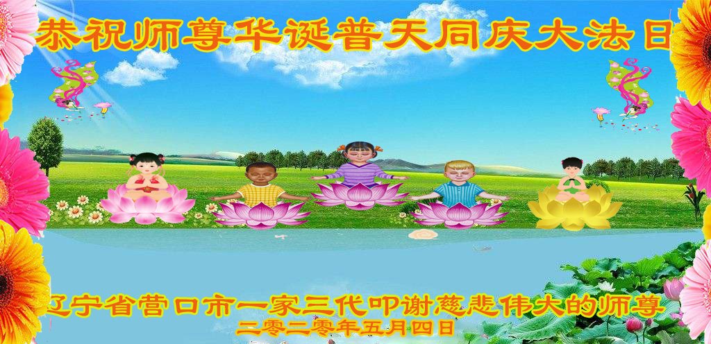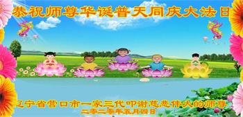 遼寧省營口市一家三代人恭賀師尊華誕暨普天同慶世界法輪大法日!