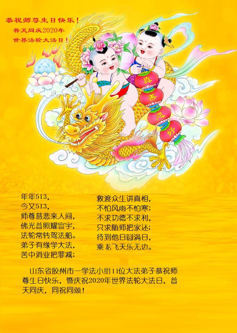 山東省膠州市一學法小組11位大法弟子恭祝師尊生日快樂!暨慶祝2020年世界法輪大法日!