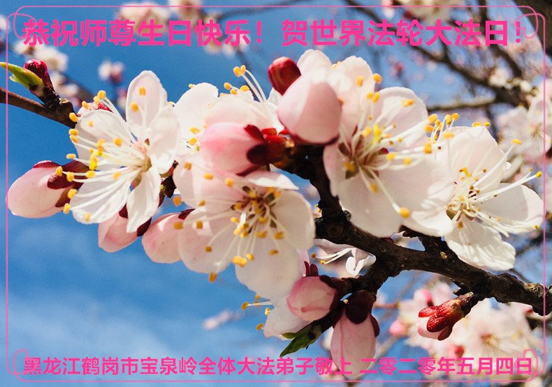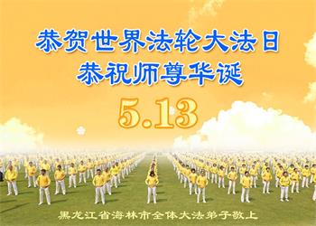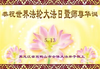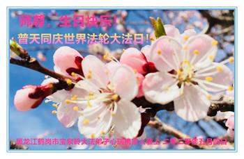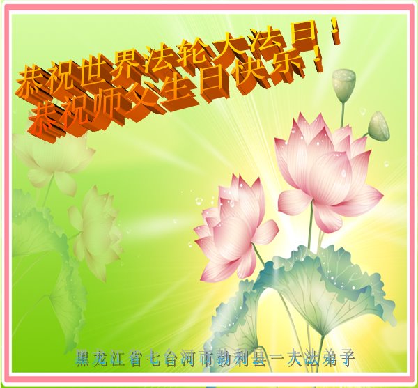 至此5·13世界法輪大法日來臨之際,賀龍江北安市通北地區全體大法弟子恭賀世界法輪大法日!同時恭祝偉大的師尊生日快樂!