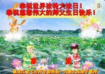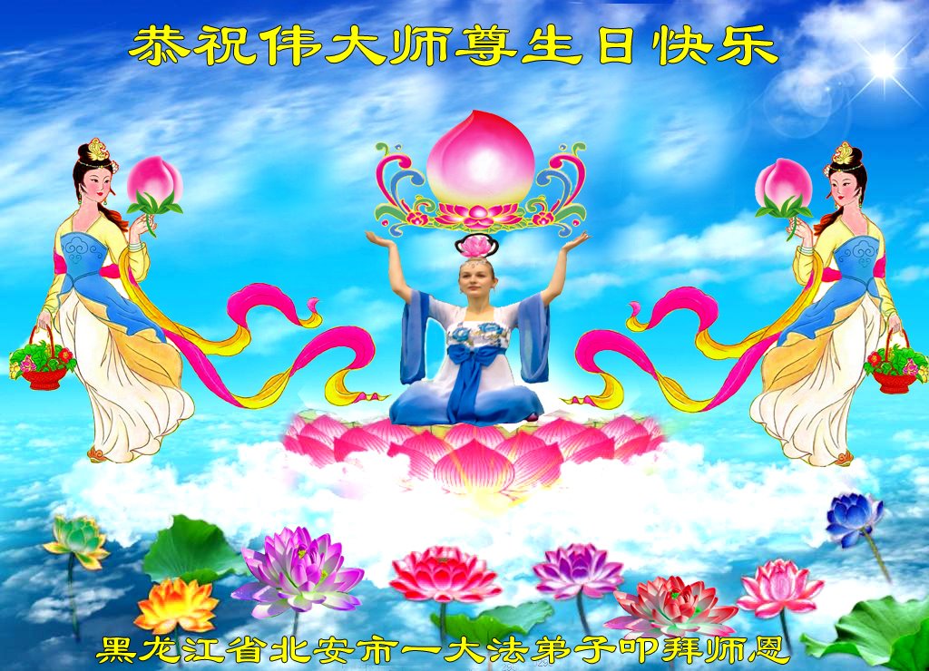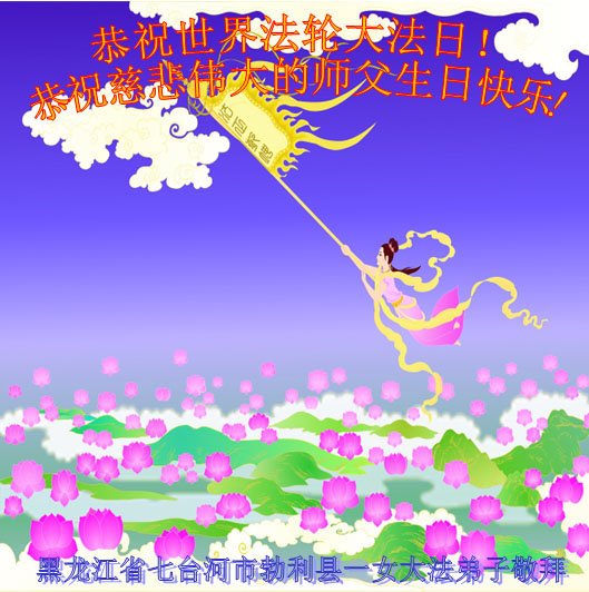 黑龍江省勃利縣一大法弟子問候師尊:恭祝師尊生日快樂!