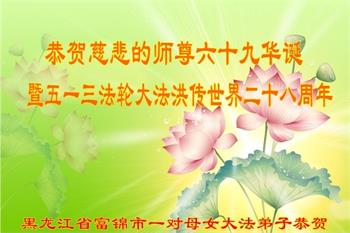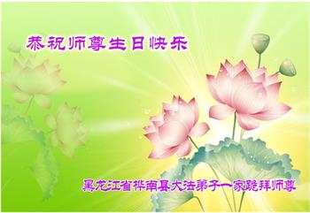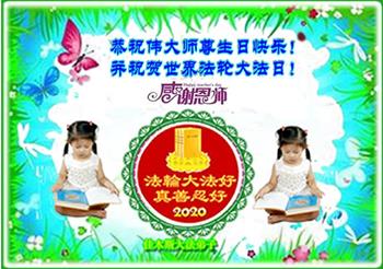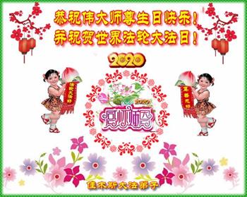大法弟子全家恭祝世界法輪大法日暨慈悲偉大的師父六十九華誕!