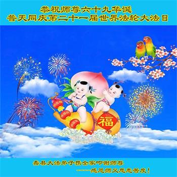 師尊,弟子們懷著無比感恩的心情迎來您的華誕,也是世界法輪大法日。在這特殊的歷史時期,這樣的日子讓人倍感珍惜。在今後的日子裏,弟子們會更加努力的多救人。謝謝師尊為我們所做的一切。