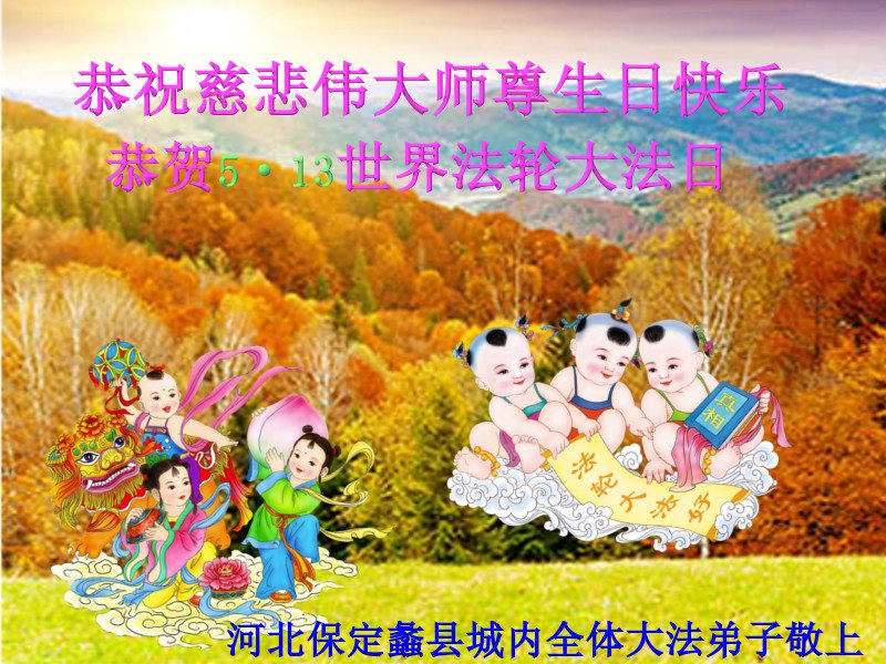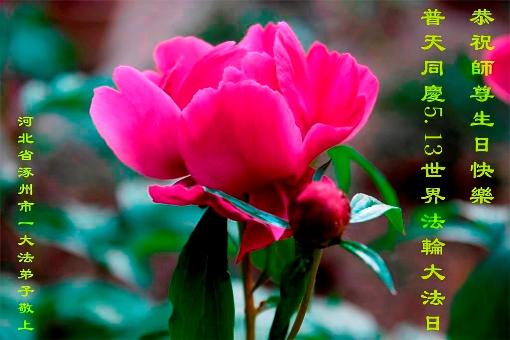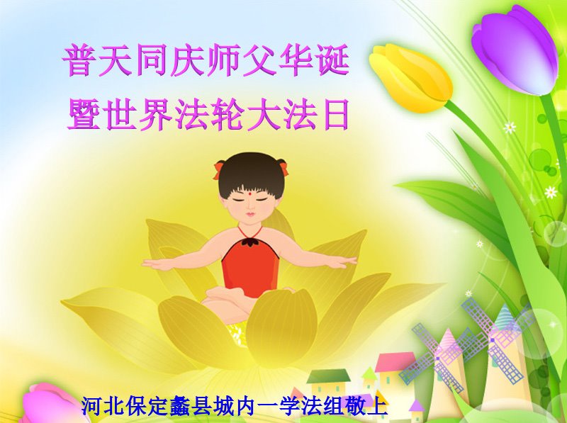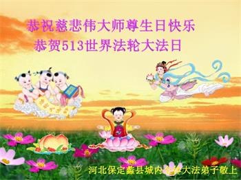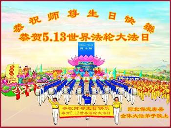 我們代表河北省保定市順平縣大法弟子祝師父生日快樂!弟子和同修們一定學好法,精進實修,做好助師正法、三件事,讓師父少操心。