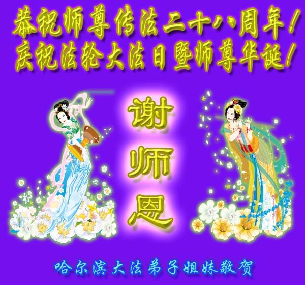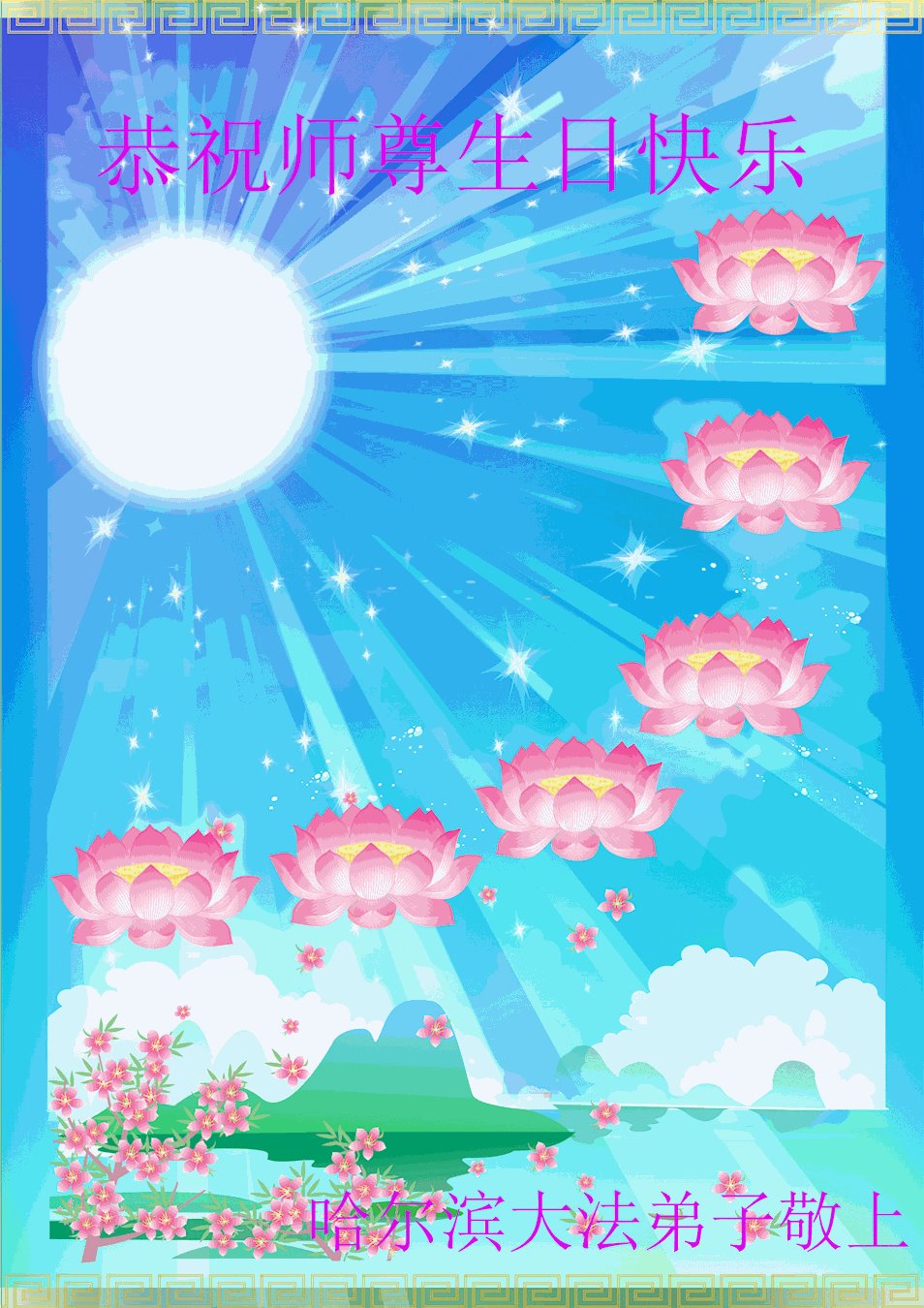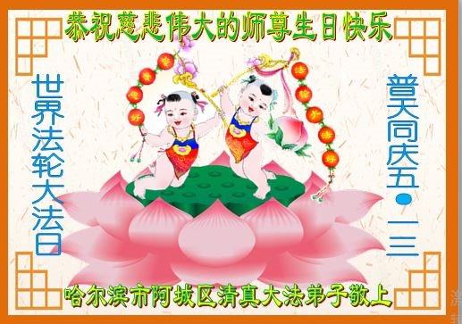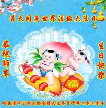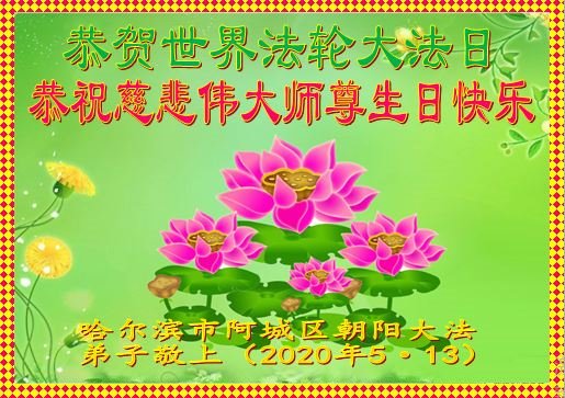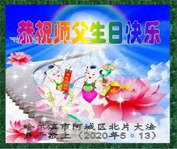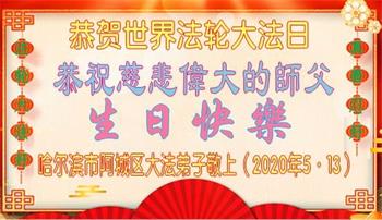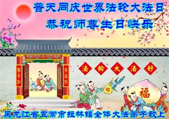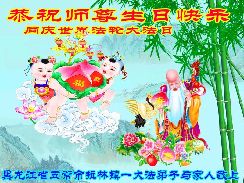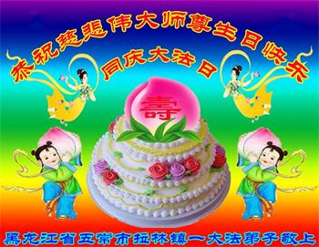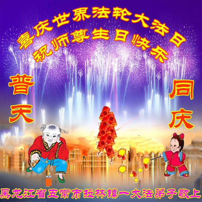 五月十三日是「世界法輪大法日」暨師尊華誕。黑龍江省五常市拉林鎮全體大法弟子恭祝師尊生日快樂!謝謝師尊的慈悲苦度!師尊您辛苦了!