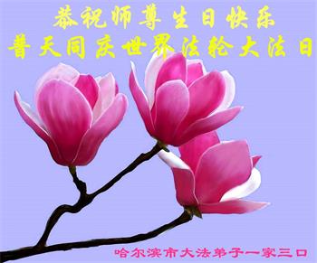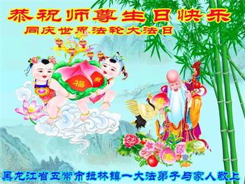黑龍江省哈爾濱市五常市拉林鎮一大法弟子與家人敬上
