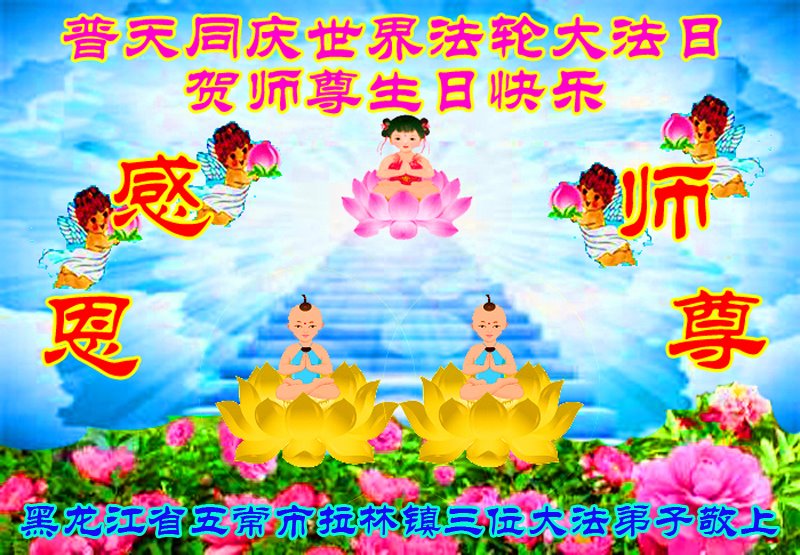 在「五一三」世界法輪大法日來臨之際,弟子恭祝師尊節日快樂!感謝師尊多年來的救度之恩。弟子一定走好最後的路,做好三件事,正念正行,助師正法,救度眾生,不負師恩,請師父放心。