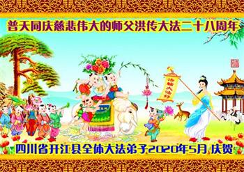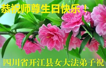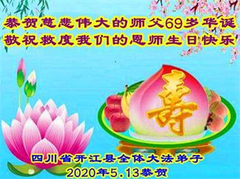 四川省達州市開江縣全體大法弟子慶賀慈悲偉大的師父洪傳大法二十八週年!