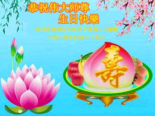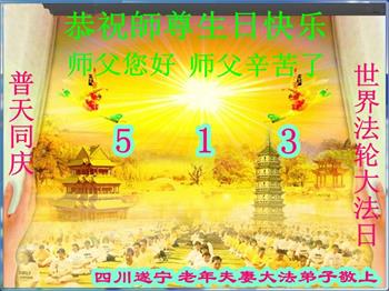 四四川遂寧老年夫妻大法弟子恭祝師尊生日快樂!暨世界法輪大法日!