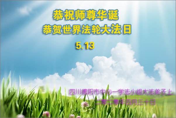 四川德陽市中心一學法小組大法弟子恭祝師尊華誕暨世界法輪大法日!